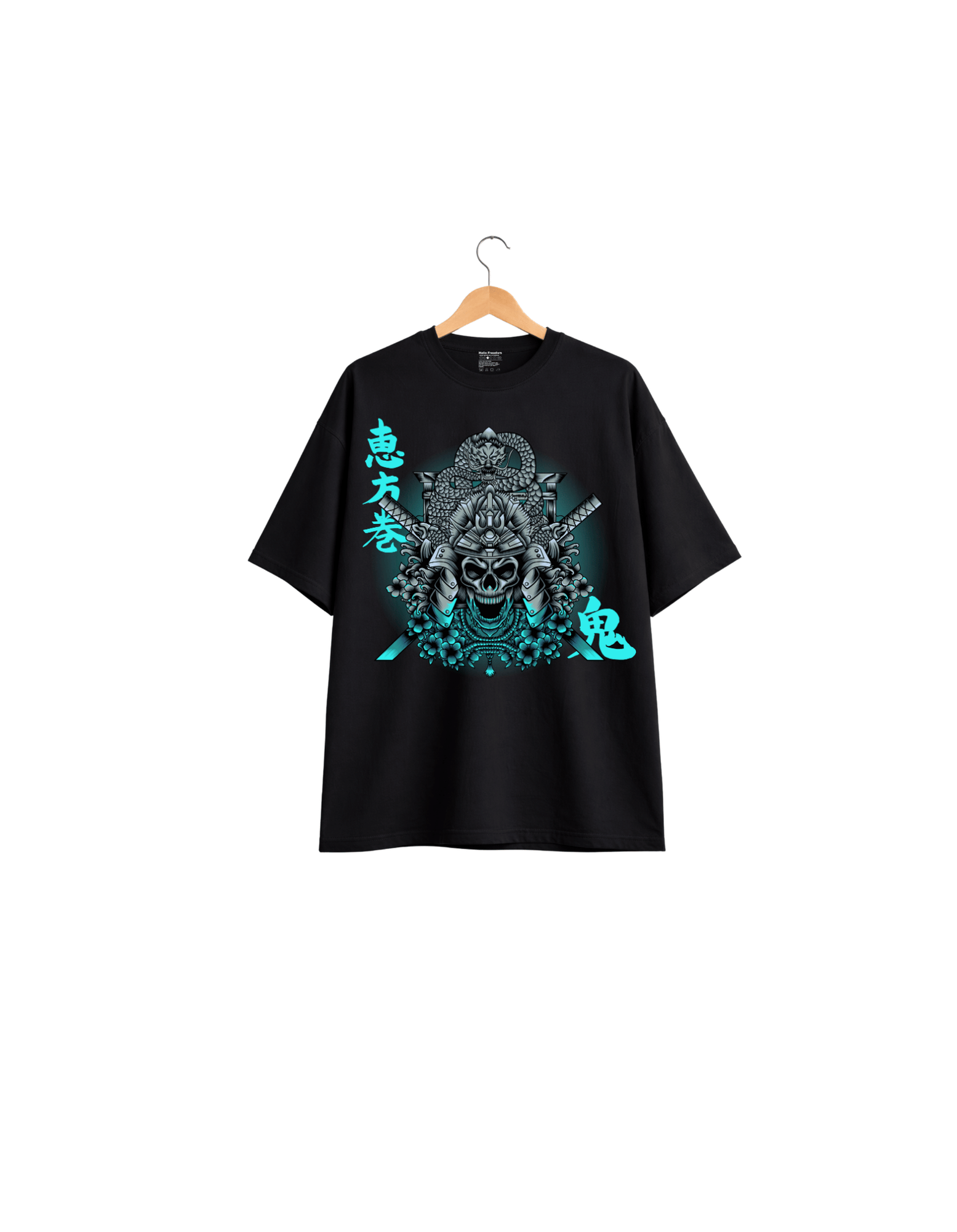Channel warrior energy with this Samurai Skull Graphic T-Shirt. Featuring a detailed skull in traditional samurai armor, crossed blades, and icy blue accents, this design blends Japanese-inspired aesthetics with bold streetwear style.