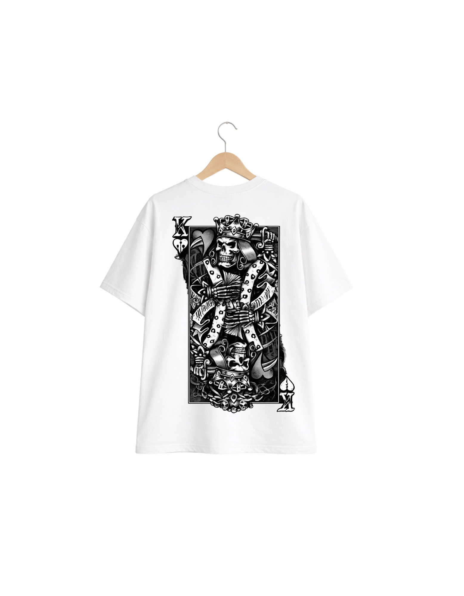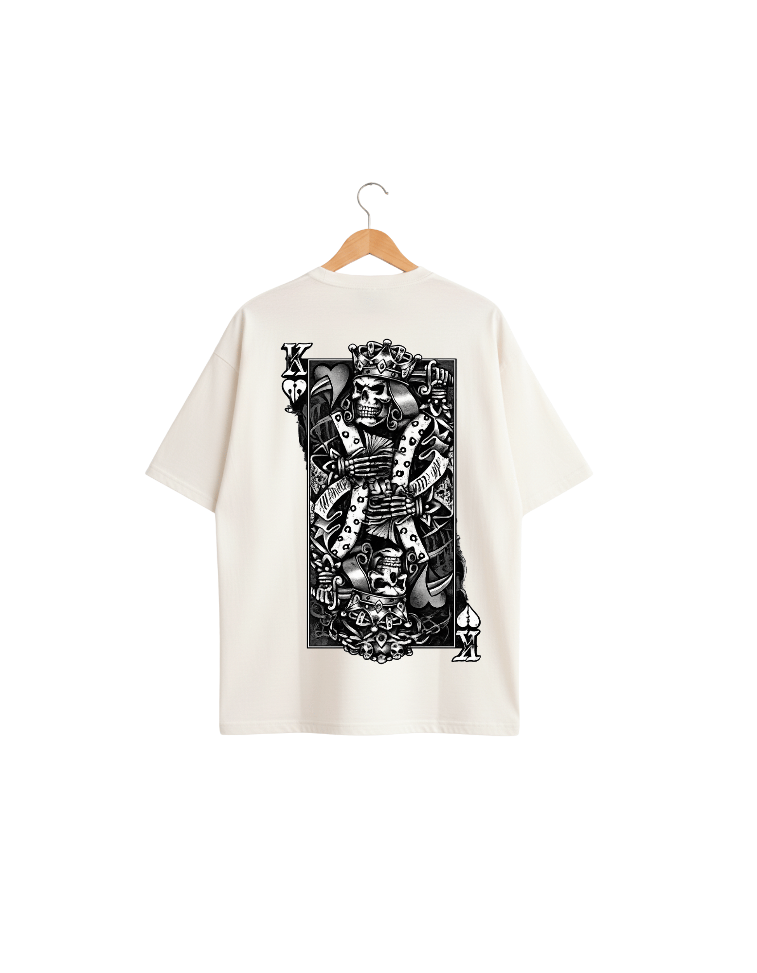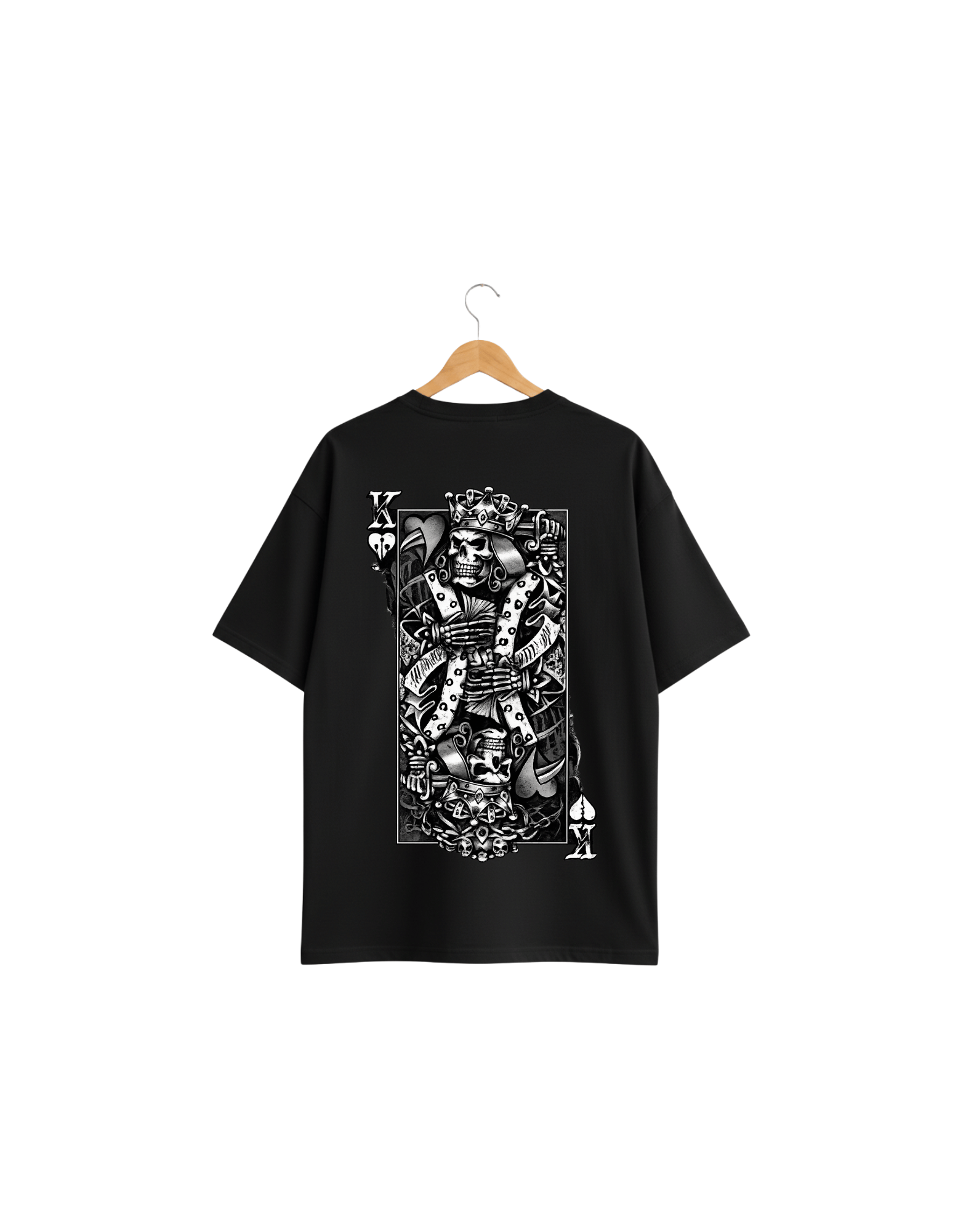 This oversized tee features bold Ace card artwork on the front and a striking Skull King graphic on the back — made for fearless, main-character energy. Designed in a relaxed fit for all-day comfort, it pairs perfectly with baggy denim, cargos, or sneakers for a street-ready look.